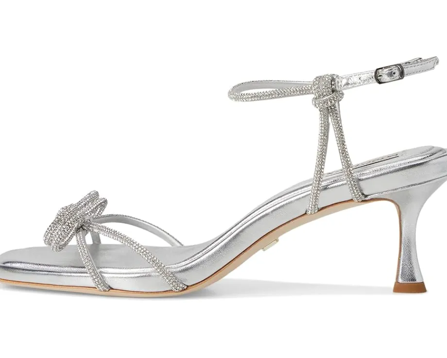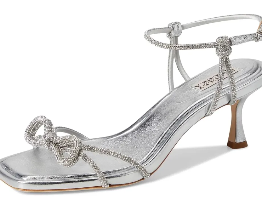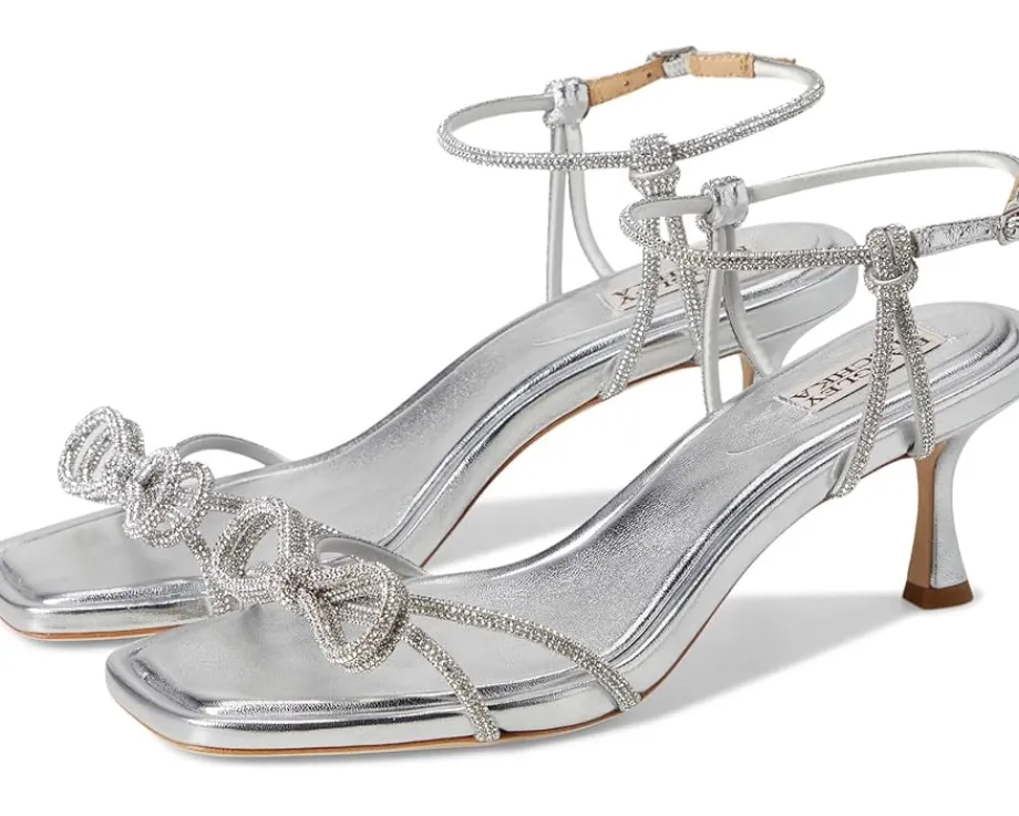 - The Badgley Mischka® Dandelion defines glamor at every step. This square toe pair features silk upper with rhinestone embellishments and buckle adjustable ankle strap closure.