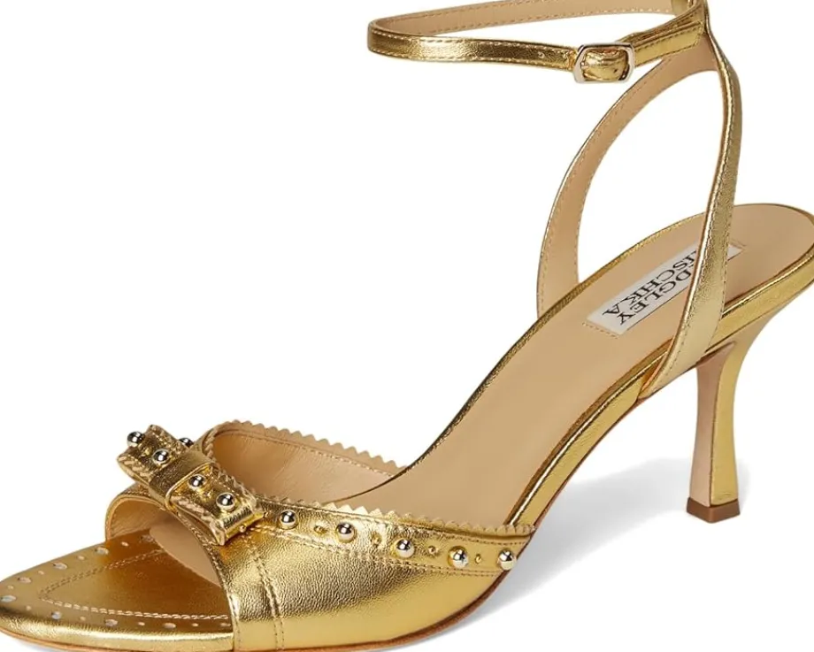 - Badgley Mischka® Giuliana: Your ticket to starlet status at every event. Wrapped in luxe leather from upper to outsole, this stiletto-heeled sandal is your go-to for upscale evenings and spotlight moments. A delicately knotted bow steals the scene, adding a romantic flourish that’s impossible to ignore. The open toe gives a graceful peek, while the adjustable buckle ankle strap ensures a secure and flattering fit all night long.
