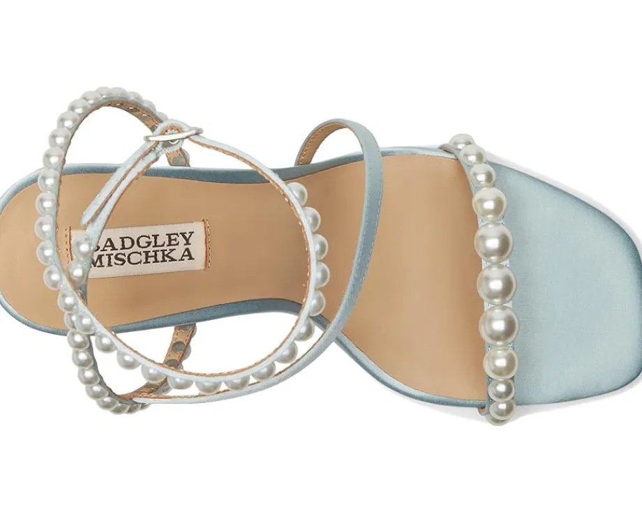 - The Badgley Mischka® Jordyn heels are block-heeled sandals with pearl ornament, making them perfect for parties and events. These heeled sandals are made of foam insole and breathable leather lining for added comfort. Their silk upper features an ankle strap with an adjustable buckle closure. Add a chic look to your outfits with these heels.