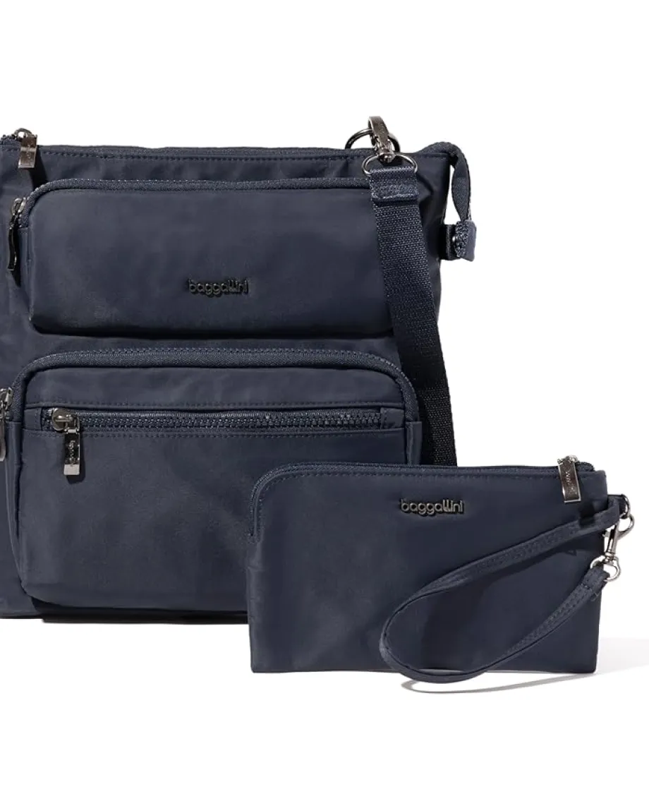 - Upgrade your crossbody with a bag that anticipates your needs. The Baggallini® Nolita Crossbody Bag is designed with two front exterior pockets, secure your glasses, shades, and lip balm within reach. Free your hands (and back pocket) with the grab-and-go phone pocket and with an RFID-protected wristlet, the Nolita is an easy pick for daily use, international travel, and beyond. The crossbody bag features an adjustable & detachable crossbody strap and the zippered closure with seven pockets enhance the functionality.