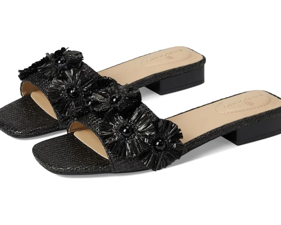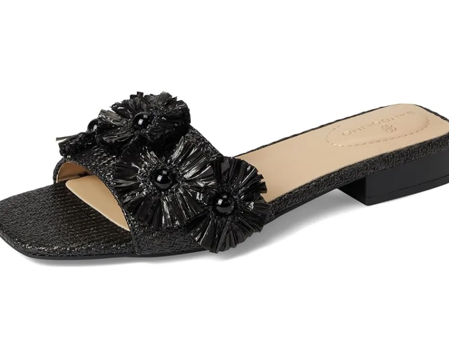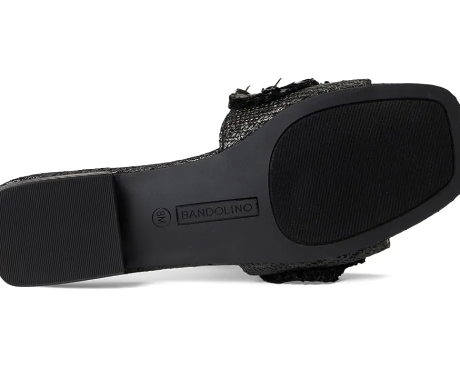 - With a sleek one-strap silhouette and an eye-catching flower detailing on the polyurethane upper, the Bandolino® Marcell Sandal makes a perfect wardrobe staple. The slip-on style sandals feature a polyurethane lining and a foam footbed. Plus, the block heel adds a striking detail to your look.