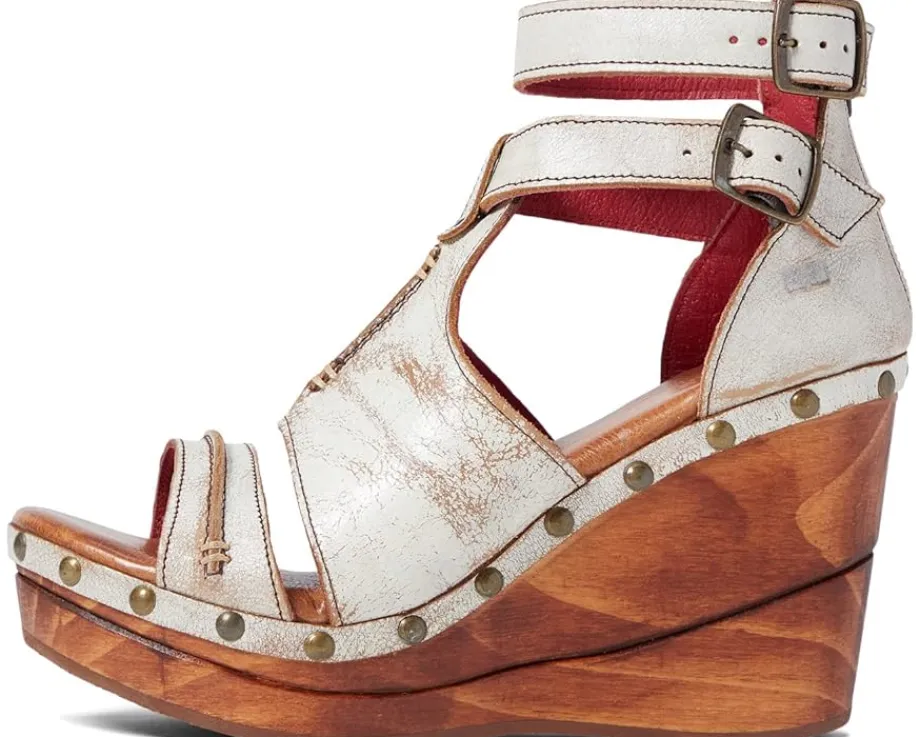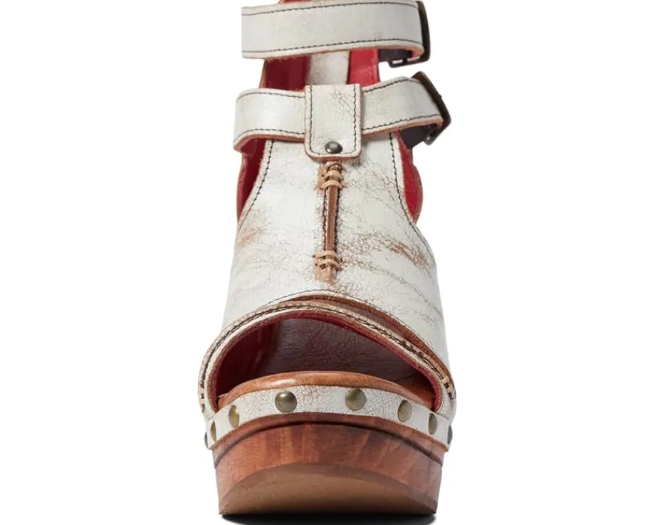 - Distressed leather upper with belted strap at instep.