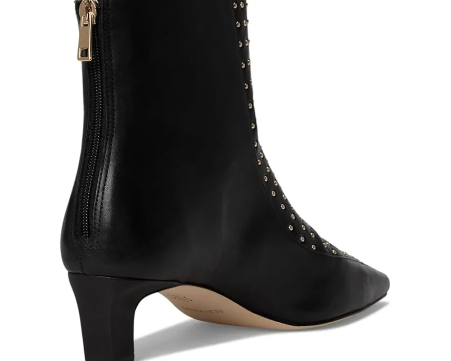 - Star-studded. This Bernardo® Esme Studs short bootie offers a sophisticated take on bohemian punk with its pin-stud details and rock n’ roll kitten heel -perfect for kicking around town. Made from leather upper, lining, and insole, these ankle-high boots are sure to make a statement wherever you go!