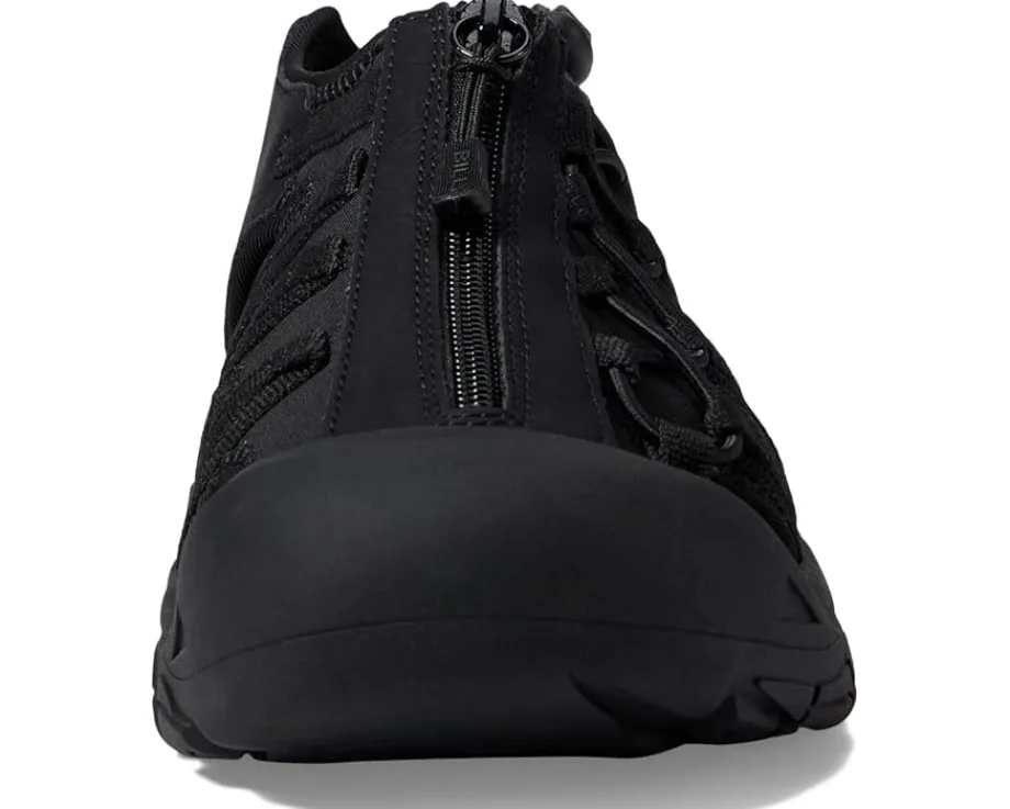 - Central zippered and adjustable bungee lacing closure for secure fit.