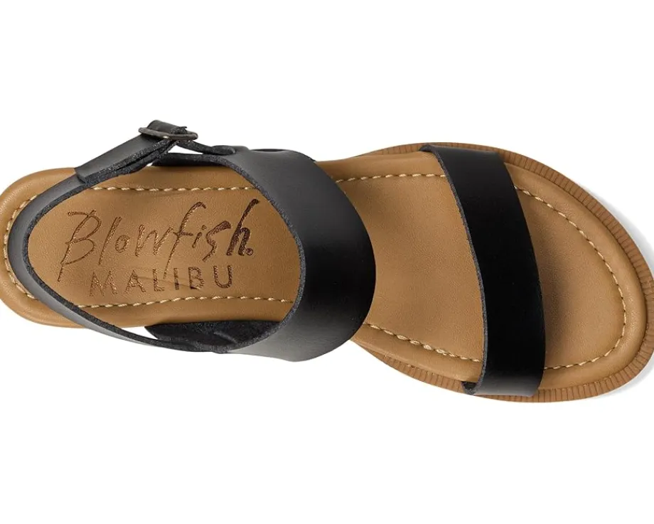 - Make the Blowfish® Malibu Arcadia slip-on sandal yours! It features a faux leather upper with buckle adjustable heel strap for a comfortable fit and a low wedge heel for just a hint of height.