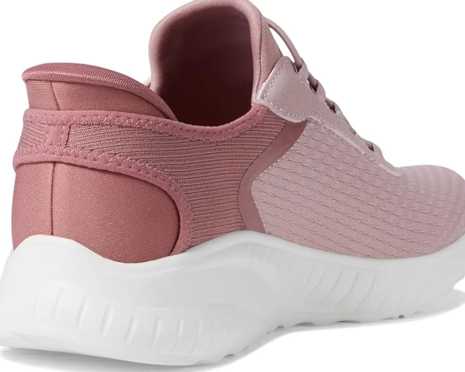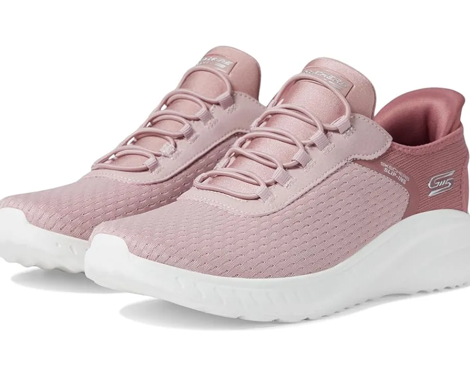 - The BOBS from SKECHERS® Bobs Squad Chaos – In Color Hands Free Slip-Ins sneakers are sure to be a go-to wardrobe essential. The shoe features elasticized lace-up panel, round toe design, and brand detailing on the left chest. Crafted from engineered knit upper.