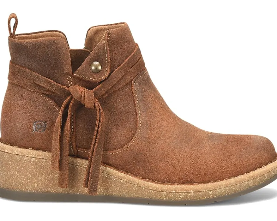 - The Born® Vaughn boots are designed to captivate with their unique details and provide a fashionable lift to your wardrobe. These boots feature Opanka hand-crafted construction that offers durability while the zippered side closure ensures easy on and off. The hand-finished distressed suede leather upper of these boots comes with a heel pull loop. These leather boots are crafted with a breathable soft fabric suede lining and soft fabric suede-covered footbed with extra foam for added comfort. Make a fashionable entry wherever you go wearing these zippered boots.
