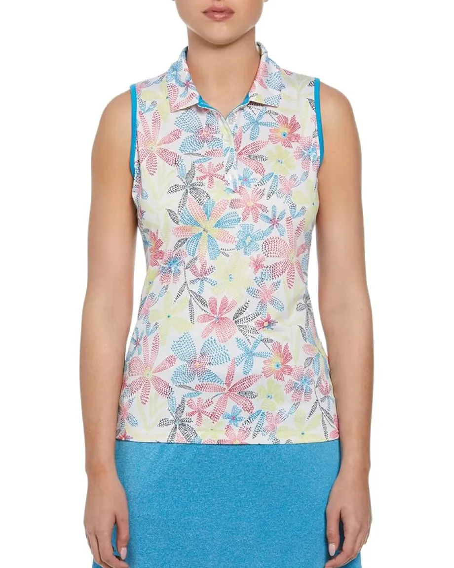 - Look and feel your best on the green wearing the Callaway® Chevron Floral Sleeveless Polo. The collared neckline with a button placket gives it a polished finish, while the sleeveless style keeps you cool and comfortable throughout your round. The vibrant allover floral print adds a playful touch to this classic piece, making it a standout in your golf wardrobe.
