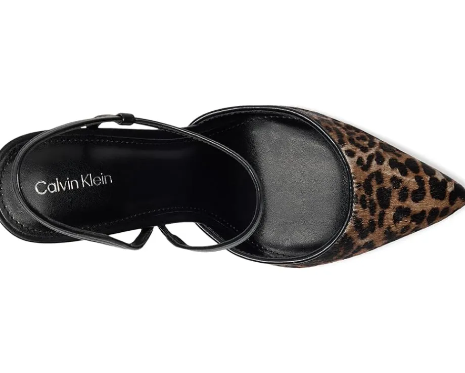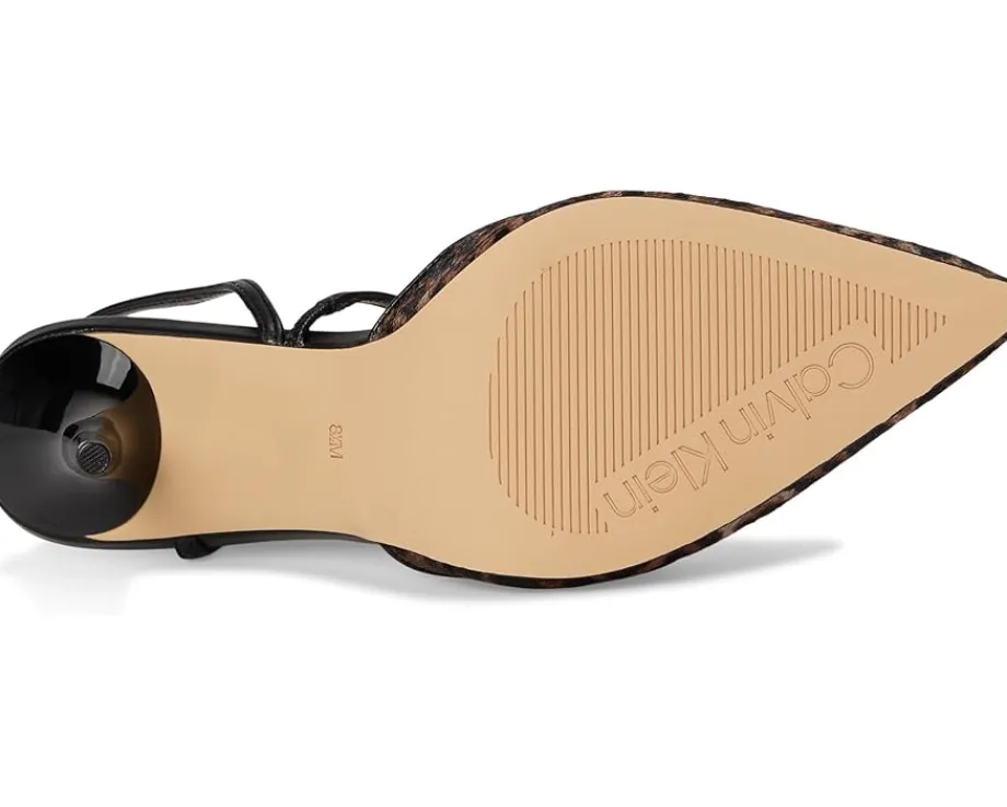 - Turn heads and break boundaries in the Calvin Klein® Corderaly. Crafted with a luxe faux leather upper and soft polyester lining, this dress pump is your go-to for desk-to-dinner transitions. The sleek silhouette boasts a pointed toe and sky-high stiletto heel, delivering bold sophistication with every step. A slip-on design with a strappy ankle adds that extra flair, making it effortlessly chic and easy to wear. Set atop a lightweight EVA outsole for comfort that keeps up, Corderaly redefines confidence.