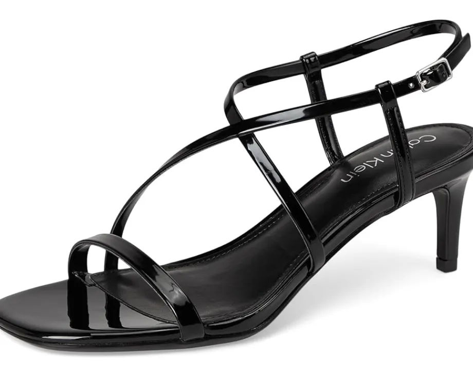 - Embrace urban elegance with a touch of comfort wearing the Calvin Klein® Ishaya Dress Sandal. This chic sandal boasts a square toe and open design, finished with a secure buckle closure. The luxurious faux leather upper pairs beautifully with the breathable, unlined interior.