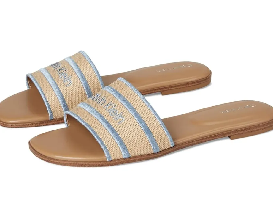 - Chic and stylish, the Calvin Klein® Kendell casual sandal is a must for your wardrobe. It features a slip-on silhouette with branding detail on the upper and sleek square toe design.