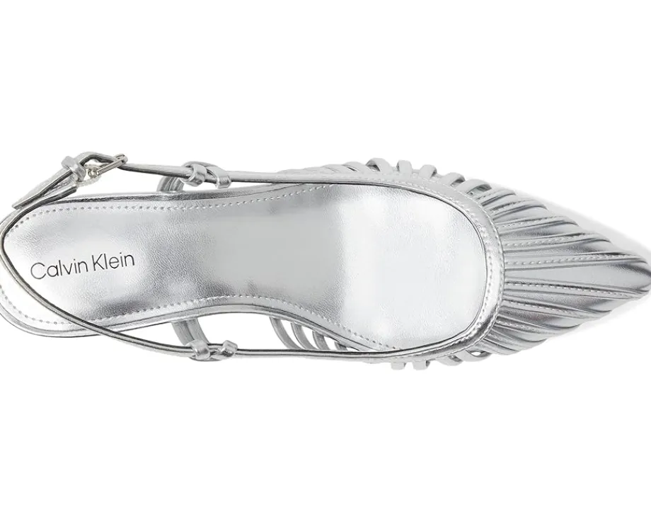 - A classic night out silhouette, the Calvin Klein® Movella heels are the perfect wardrobe staple. These heeled sandals are made of a faux leather upper, cushioned insole, and polyester lining. They feature an adjustable slingback strap, pointed toe shape, and kitten heels. These chic sandals will pair with any outfit.