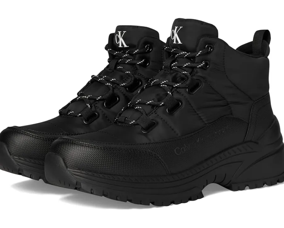 - Step up your look in the Calvin Klein® Noanne casual boots. This ankle-high footwear features a lace-up design, signature logo detailing and a sleek round toe silhouette.