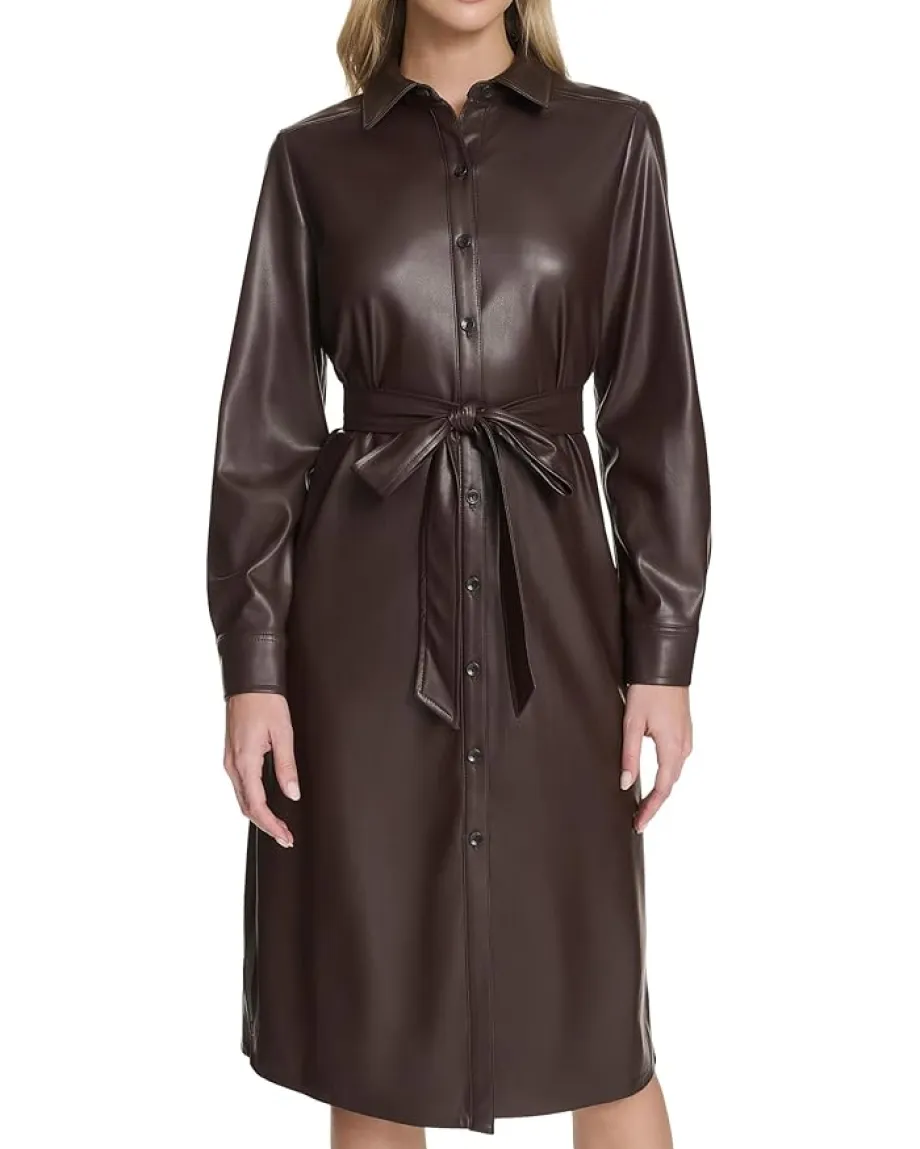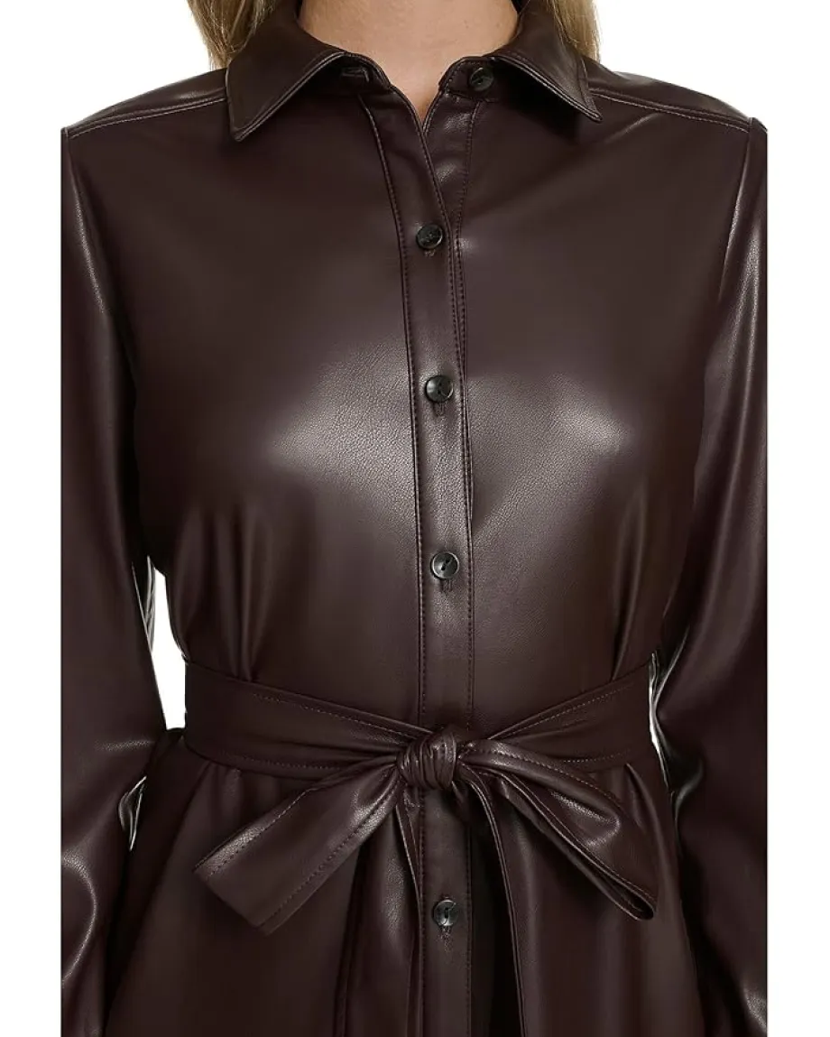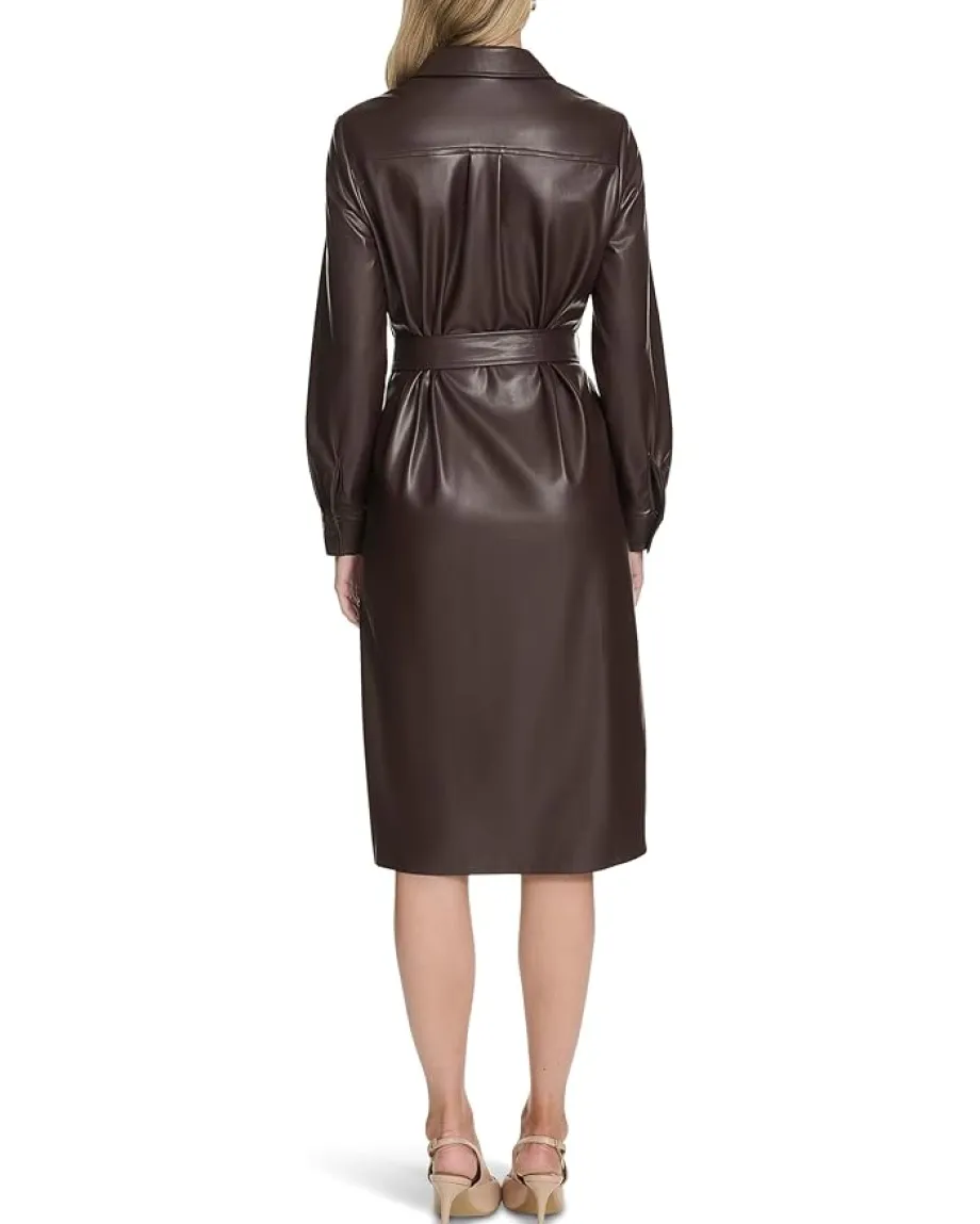 - Spread collar neckline and long sleeves with buttoned cuffs.