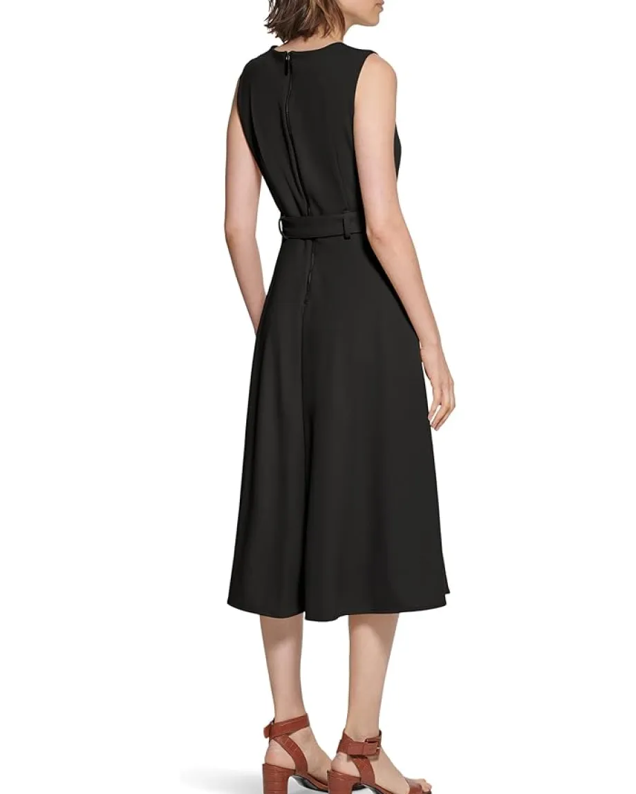 - Calvin Klein® Sleeveless Scuba Crepe Self Tie Aline dress.