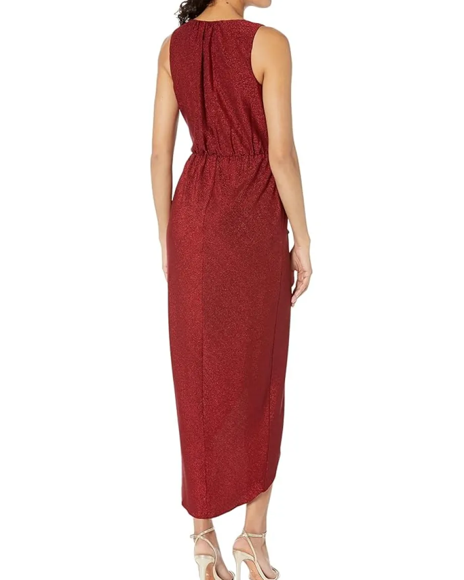 - Calvin Klein® V-Neck Glitter Knit Gown with Ruched Front.