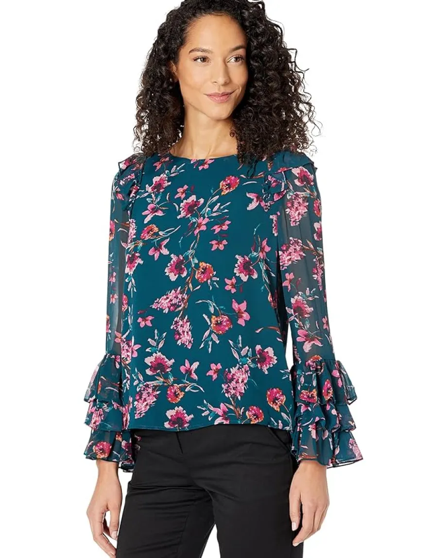 - Go from the office to dinner dressed in style with the CeCe™ Long Sleeve Floral Moment Blouse w/ Ruffle Cuff.