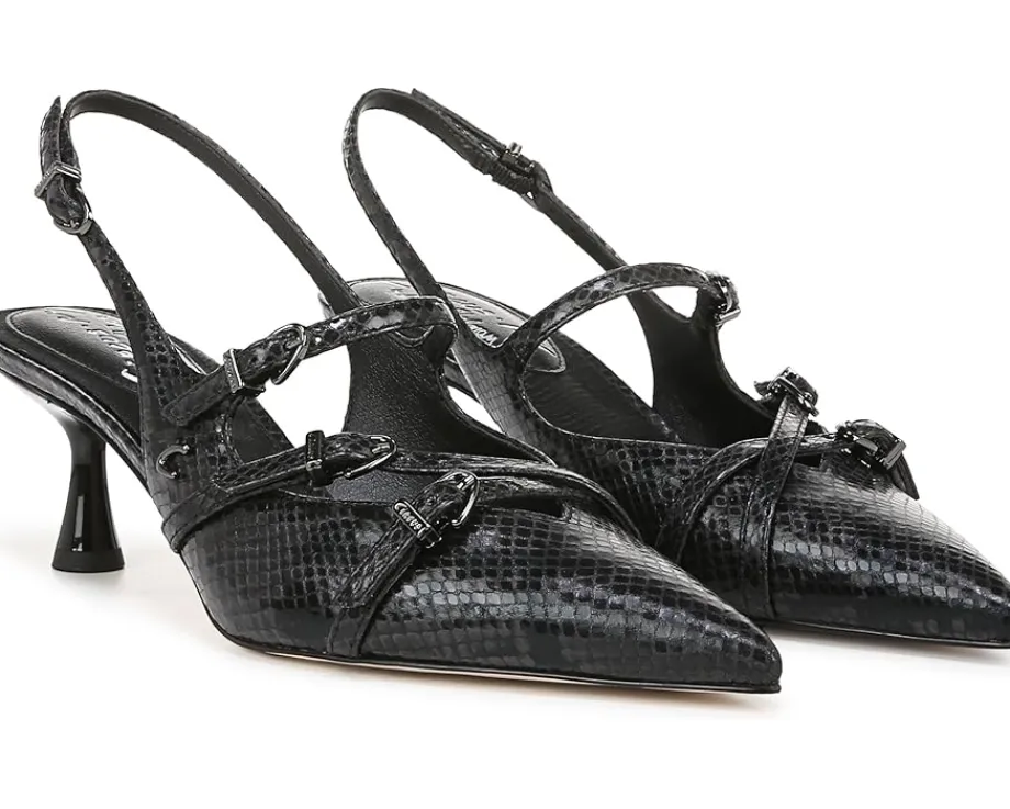 - Presenting Fraya – one part vintage, one part playful. These crisscross slingbacks are finished with a mini buckle detail and flared heel. Turn up the volume and complete your look in the Fraya.