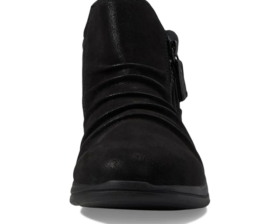- Sleek and slouchy, the Clarks™ Breeze Range Boots are exclusively designed to give an instant boost to your street or dressy style without letting you give up comfort. The shoes feature an ankle-high silhouette with a closed round toe and are secured with a zippered closure for easy on and off. The synthetic upper displays a ruched detailing for added style while the Cushion Soft™ technology on the foam footbed ensures comfort with every step.