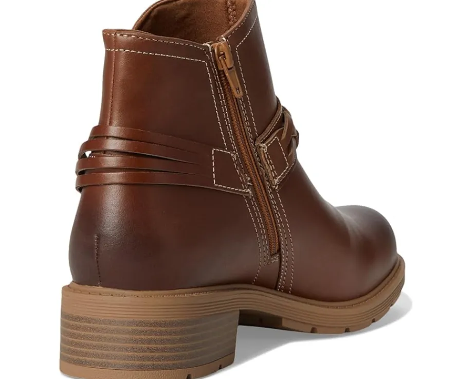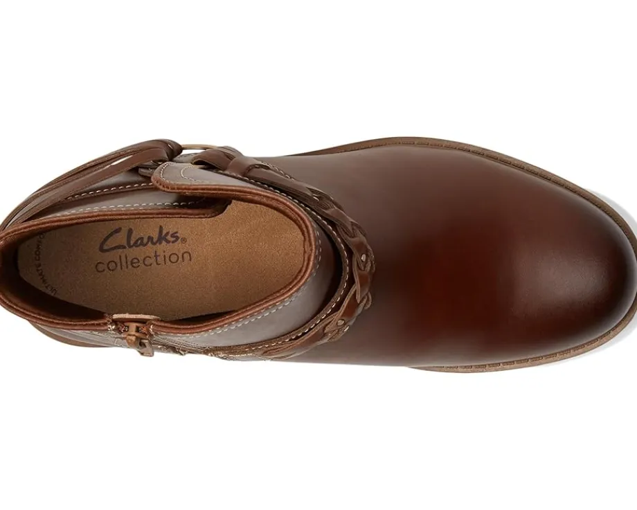 - Showcase your take on legendary style wearing the Clarks™ Hearth Kaylie Ankle Boots. Featuring an interwoven stylish strap at the ankle, the footwear boasts a round toe shape and stacked block heel.