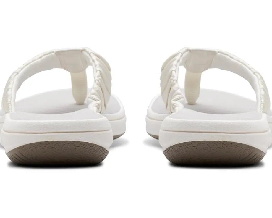 - Be classy and sassy donning the Clarks™ Breeze Rae. These thong-style flat sandals feature slip-on construction, nylon upper, and allover ruched detailing on the straps. Wear this flats with your shorts to get a modish look.