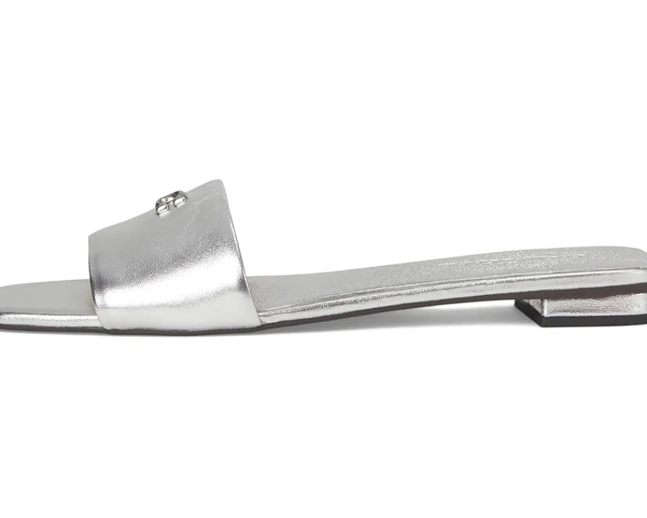 - Radiant glamor meets everyday ease styling the COACH® Sculpted C Metallic Leather Flat Sandals. Featuring a striking metallic leather upper, these sandals turn heads with every step. The signature sculpted C detail adds a bold touch of designer flair, while the man-made leather lining and cushioned leather footbed deliver all-day comfort without compromising on style. Slip-on convenience meets street-smart chic, anchored by a durable rubber outsole that moves with you from city strolls to rooftop soirées.
