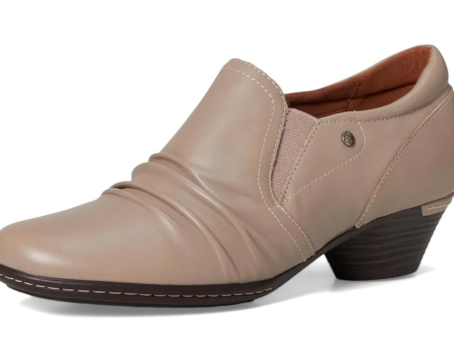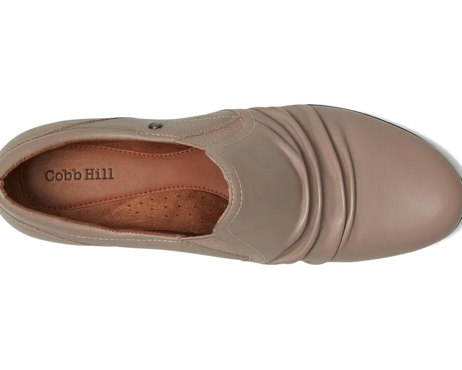 - A modern classic with a touch of tradition styling Cobb Hill® Lucy! This chic slip-on shoe features a luxurious suede upper and a round toe design for a modern look. With its pull-on lace design, you’ll enjoy easy wearability and a secure fit. The cushioned sock and PU footbed deliver exceptional arch support and all-day comfort, while the polyester lining ensures a soft touch. The synthetic rubber outsole provides superior traction and flexibility, making every step a breeze.