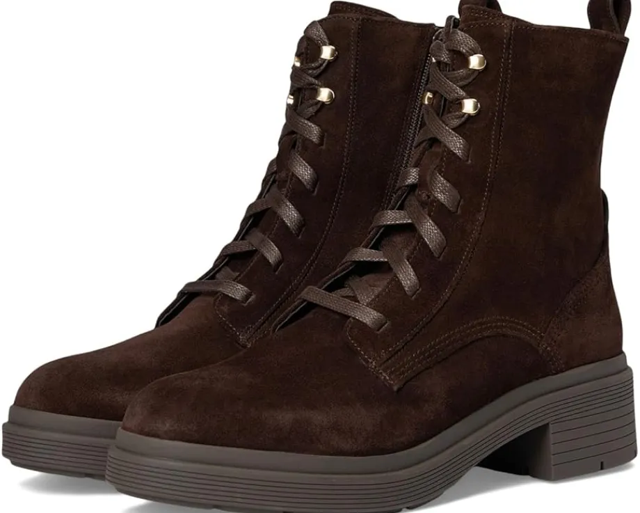 - The Cole Haan® Cherise Lace-up Lug Boots feature waterproof leather upper for protection against the elements. Inside, a fully padded leather sock lining provides enhanced comfort. The midsole consists of an EVA wedge, measuring 65mm, offering elevated style and cushioning. For stability and durability, the shoe is equipped with a lugged outsole that includes rubber pods for improved traction. Systematic layers of proprietary cushioning compounds softly pad each step.