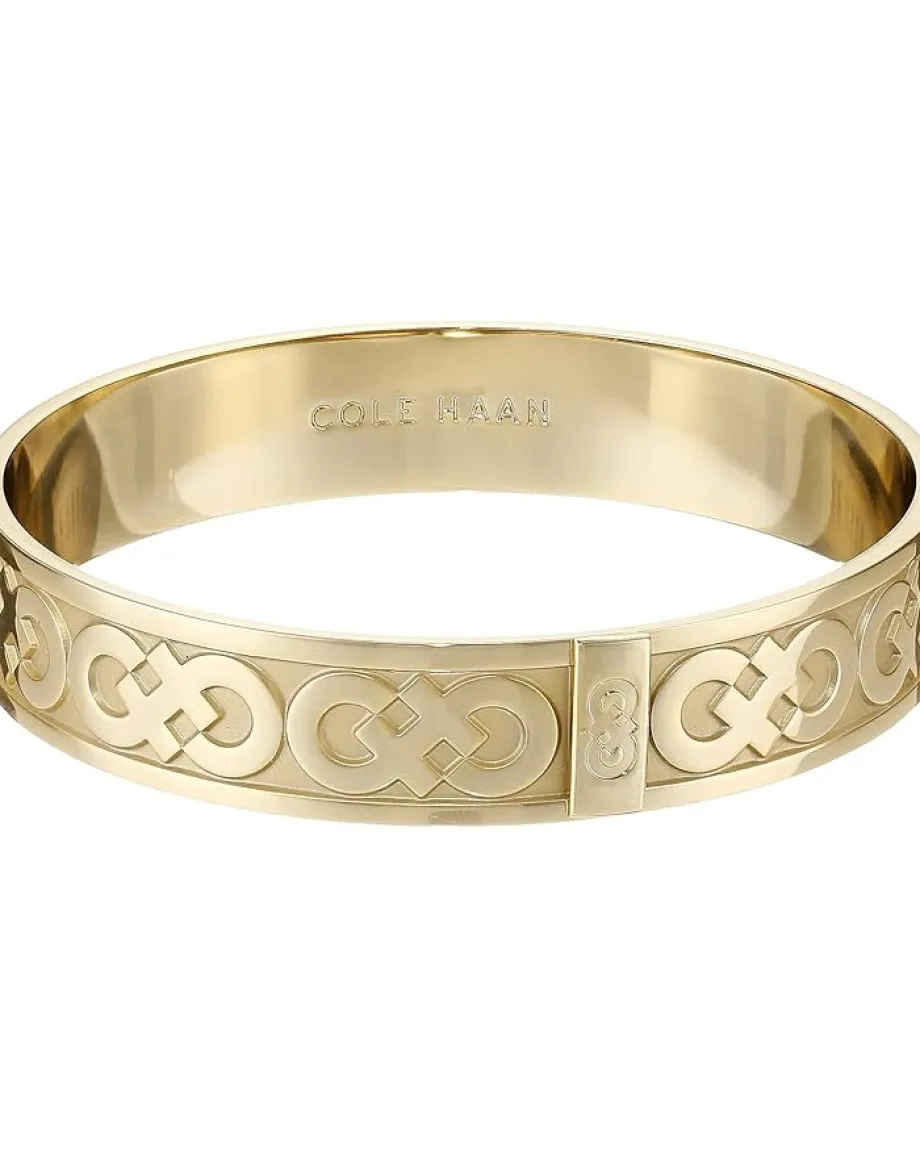 - Metallic bangle features signature logo imprint.