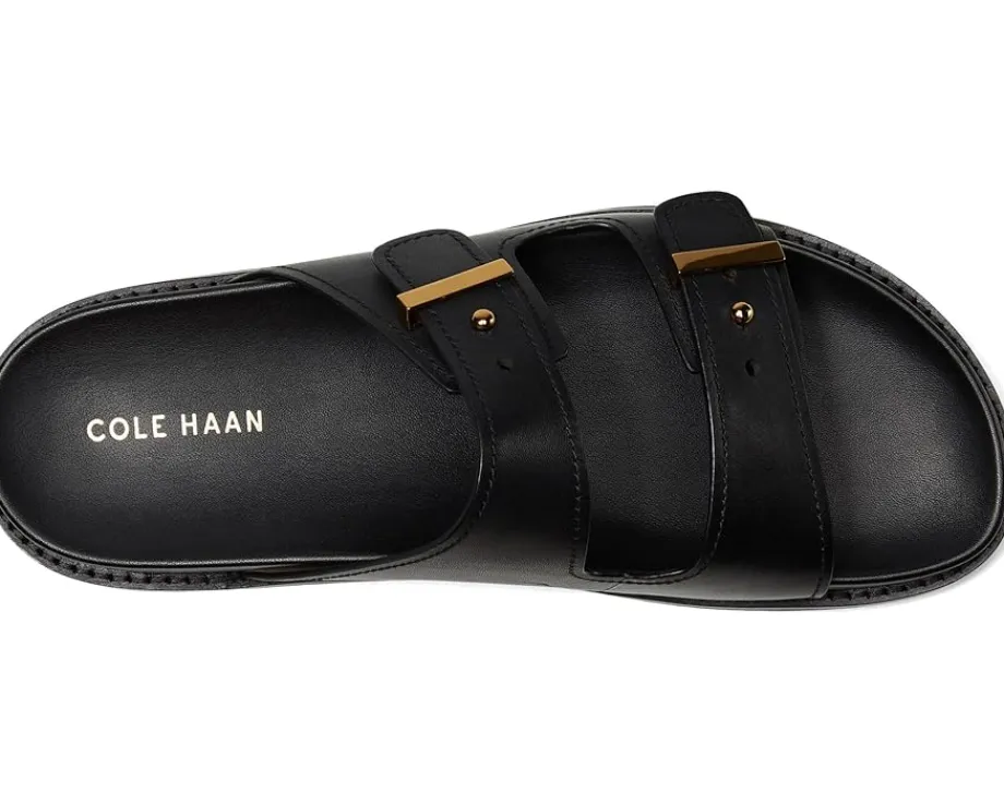 - The Cole Haan® Marisol Footbed Sandals. The two band slide sandals feature adjustable straps with metal stud and buckle to achieve an elevated upper. The dual density molded footbed which provides comfort, durability and cushioning. The leather-lined slip-on slide sandals feature an extended welt with welt stitch, rubber molded outsole with modern weave for lightweight feel and added grip, traction, and flexibility.