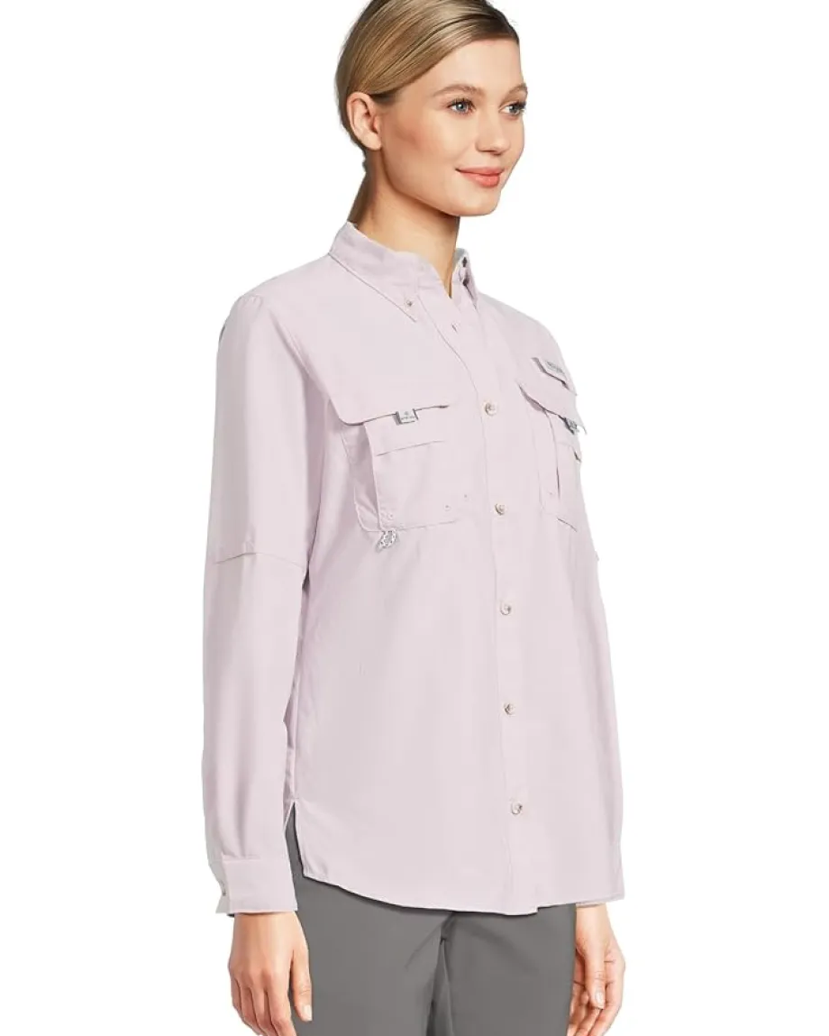 - Embrace the class wearing the Columbia® Bahama™ II Long Sleeve. Made from Omni-Shade Broad Spectrum UPF 50 sun protection fabric which is quick-drying. Featuring collared neckline, button front closure, long, rolled-up sleeves with button cuffs, two chest pockets, and curved hem.