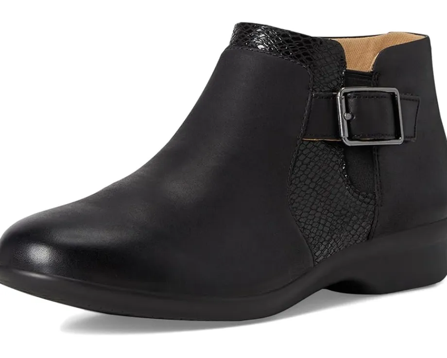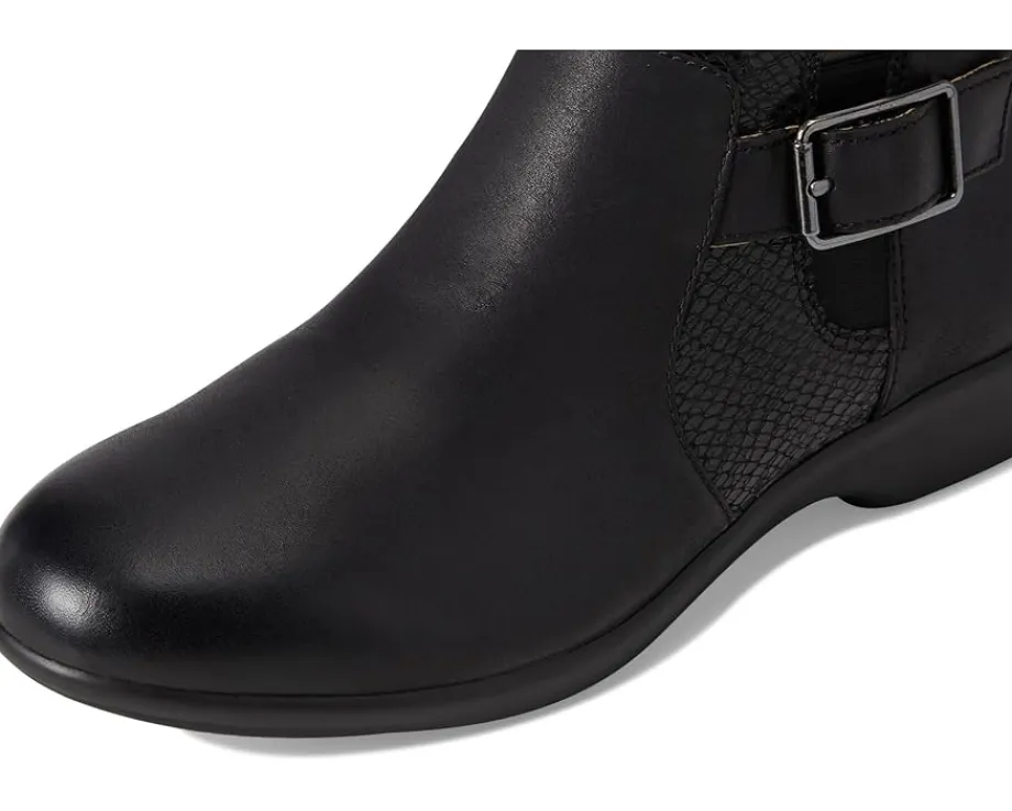 - The Carolyn bootie by Dansko® is your go-to for polished style and feel-good function. Crafted with high-quality leather uppers and chrome-free leather lining, it’s as breathable as it is beautiful. The textured inlay and side buckle bring on-trend flair, while the pull-on design, goring panel, and easy side zippered offer no-fuss entry. Inside, a removable PU footbed with Dansko Natural Arch® technology delivers lightweight cushioning and all-day support, so you can strut, stroll, or slay without slowing down. The ankle-high silhouette, closed toe, and durable rubber outsole make it perfect for everyday elegance and nonstop wear.