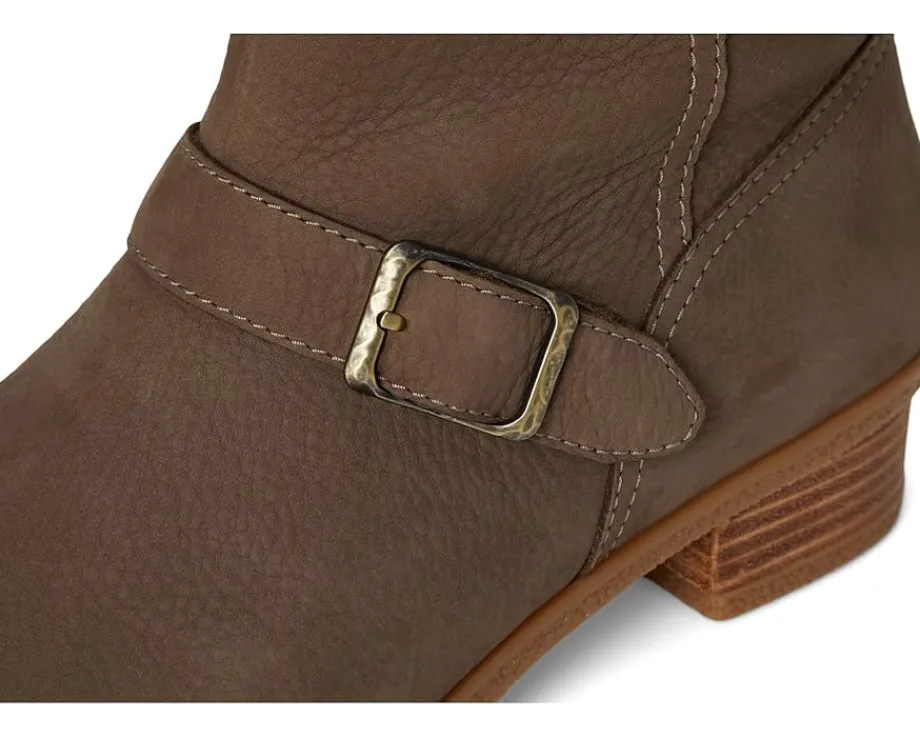 - Take your style statment to the next level wearing the Dansko® Delphine Boots. With full waterproof construction, this mid-calf boot looks beautiful with a stylish hardware and endless comfort. These raised round-toe boots feature a side-zip closure, double-buckle detail, and a leather stacked heel with water repellent treatment and TPU toplift. These are crafted with a waterproof burnished leather upper, leather lining, chrome-free, leather covered, removable molded PU footbed with memory foam for added cushioning, and the Dansko® Natural Arch technology ensures added support.