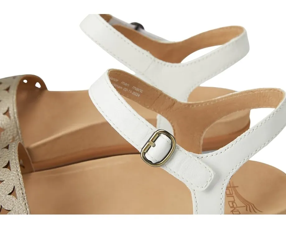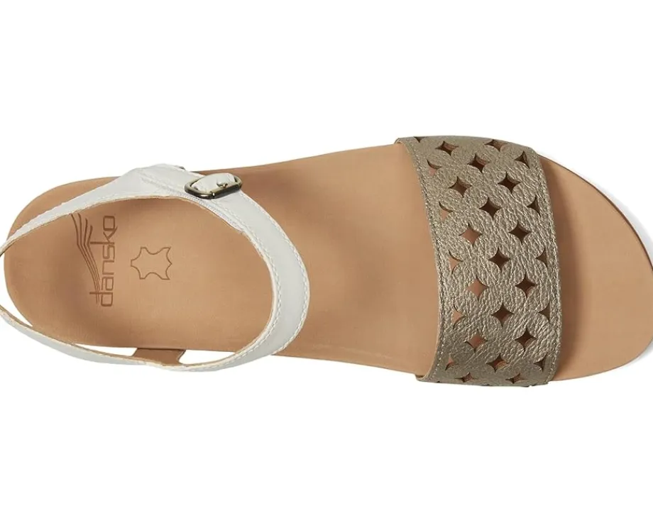 - The best in flat sandal support gets a style upgrade with Dansko ® Jodie thanks to hand-selected leathers and a detailed cutout design. Crafted from leather, lining, and EVA insole, this pair of sandals features open round toe, nubuck socklining for a soft underfoot experience, adjustable hook-and-loop closure, contoured dual-density EVA footbed for full-foot support.
