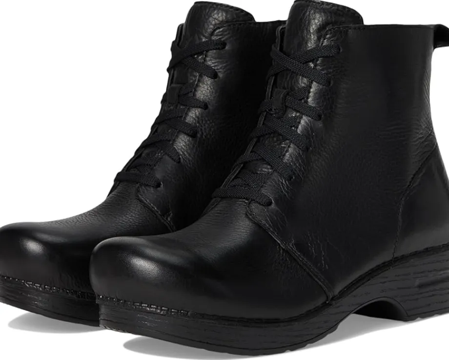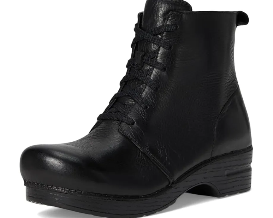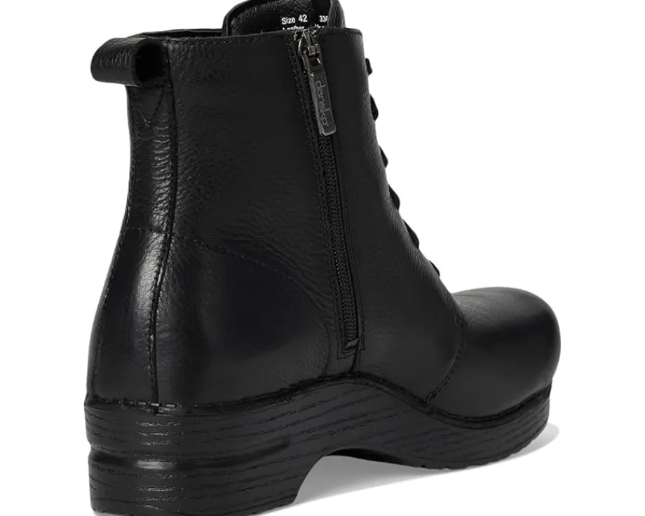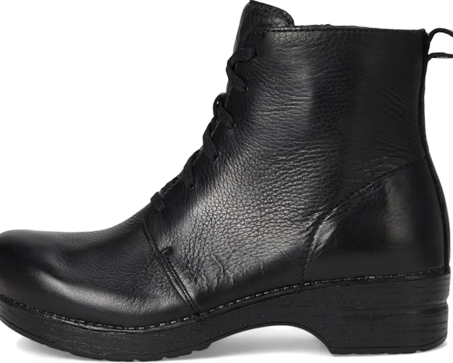 - Discover the perfect blend of comfort and style donning Dansko® Sigourney, where premium leather meets modern innovation. This ankle-high boot features a tumbled leather upper and striking multi-colored fabric lining, creating a standout style that’s as functional as it is fashionable. With a speed lacing system and inside zipper for easy adjustability, you’ll enjoy both convenience and comfort. The roomy, thermoplastic toe box ensures ample space for natural movement, while the contoured PU midsole offers exceptional arch support. The durable PU outsole, combined with the shock-absorbing, flexible polyurethane, provides stability and shock absorption, perfect for all-day wear.