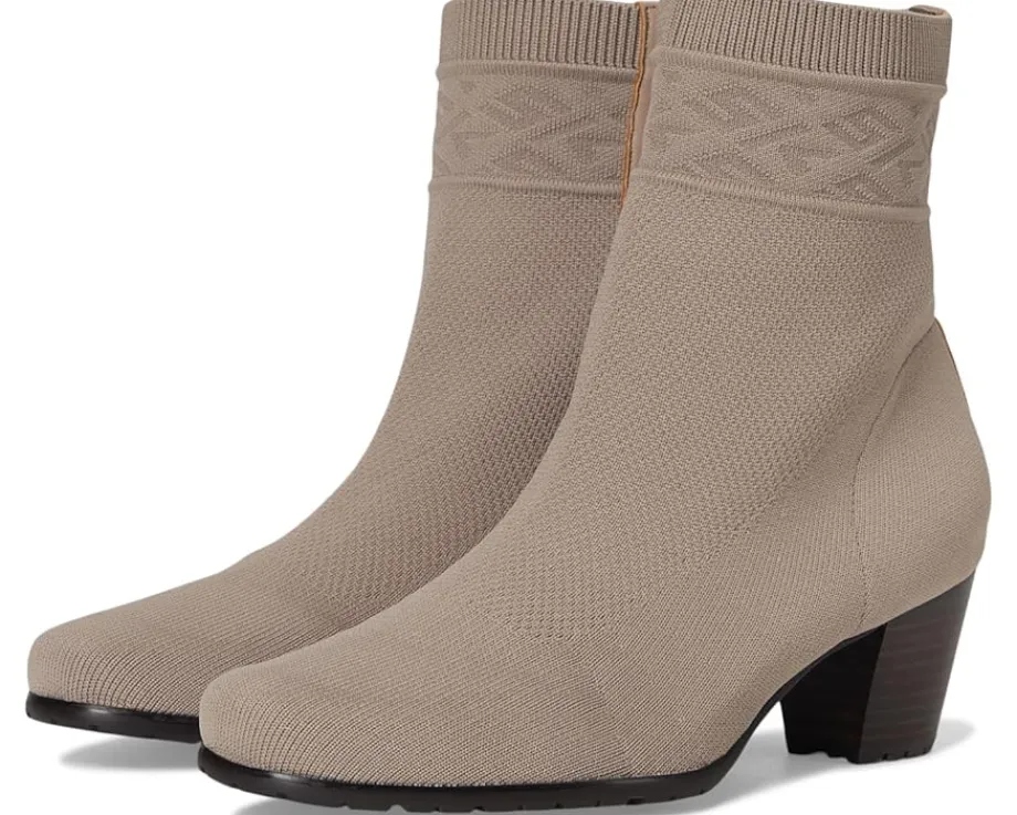 - The David Tate® Kalista boots are sophisticated stretch-knit boots that combine style and comfort seamlessly. With their sleek stacked block heels and mini lug rubber outsole that provides stability and shock-absorbing comfort, these ankle-length boots offer exceptional stability and cushioning with every step. The thoughtfully designed interior zipper allows for effortless on and off, making them a practical choice for any occasion. Crafted from a water-resistant polyester, the upper not only enhances durability but also adapts beautifully to the contours of your foot, ensuring a custom fit. Their nylon lining and removable, contoured rubber insole with arch support offer all-day support. These heeled boots are a perfect blend of comfort and elegance, offering a strikingly refined appearance that elevates any outfit.