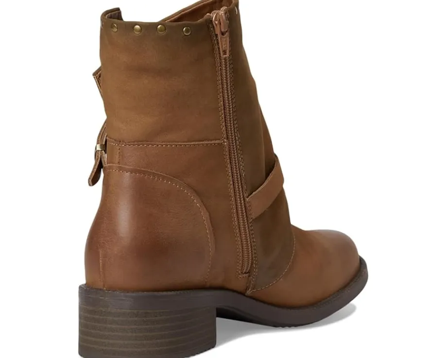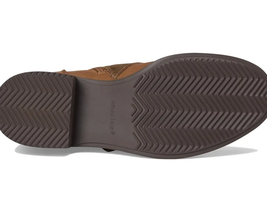 - Walk into bold, unapologetic style wearing the David Tate® Spectacular. Crafted from luxurious brushed nubuck leather, this ankle-high boot exudes sophistication with a unique folded leather vamp that adds depth and texture. Dual stylish straps with gleaming stud closures catch the eye, while intricate nail head embellishments along the top line deliver a nostalgic, fashion-forward statement. Designed for all-day confidence, the round-toe silhouette rests on a sturdy block heel and durable rubber outsole, ensuring comfort without compromising style. The zippered side closure provides easy on-and-off convenience, and the nylon lining enhances a smooth, breathable fit.