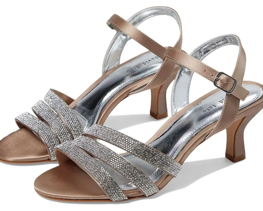 - No matter the occasion, complement your flawless look in the David Tate® Trio sandals. Featuring a round, open toe silhouette with beautiful rhinestone on the triple banded strapping and an adjustable buckle closure strap.