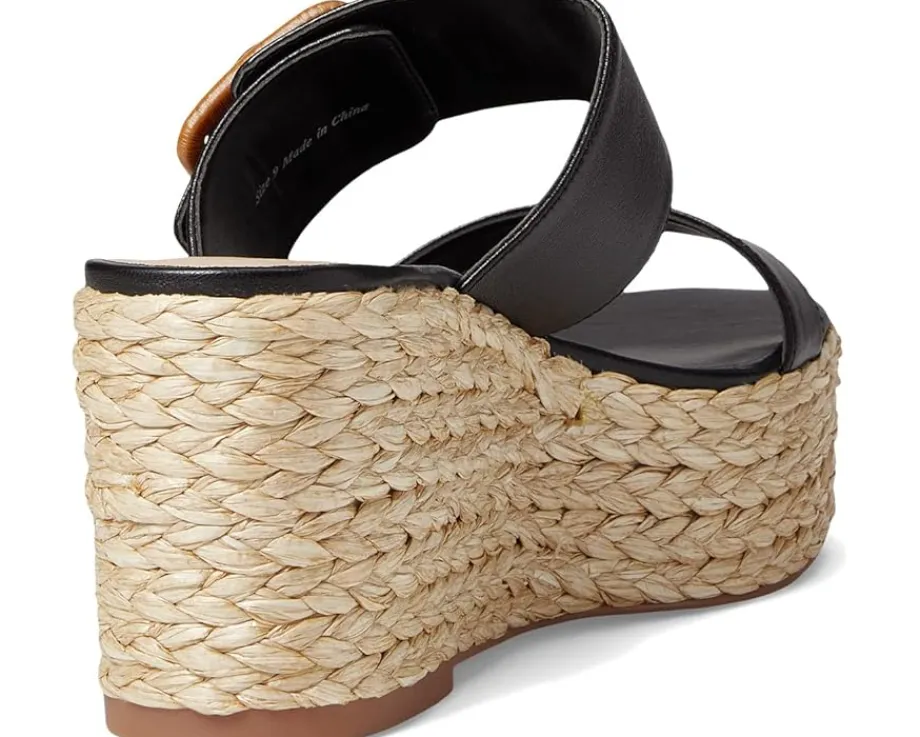 - Espadrille-style chunky wedge heel.