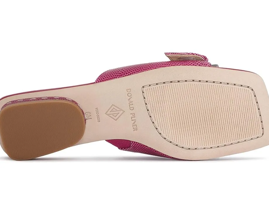 - Highlighting an on-trend lizard print and a signature buckle ornament on the soft leather upper, the Donald Pliner® Tracie Sandals bring on a chic update to your everyday style. These are set on a memory foam cushioned leather insole for all-day comfort and supported by a low block heel for stability.