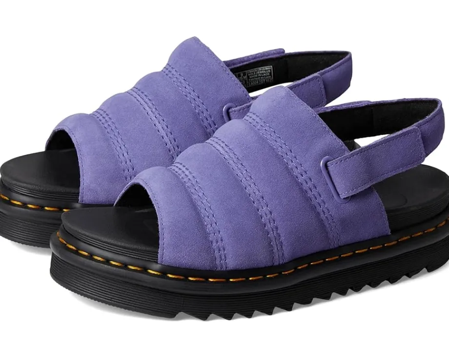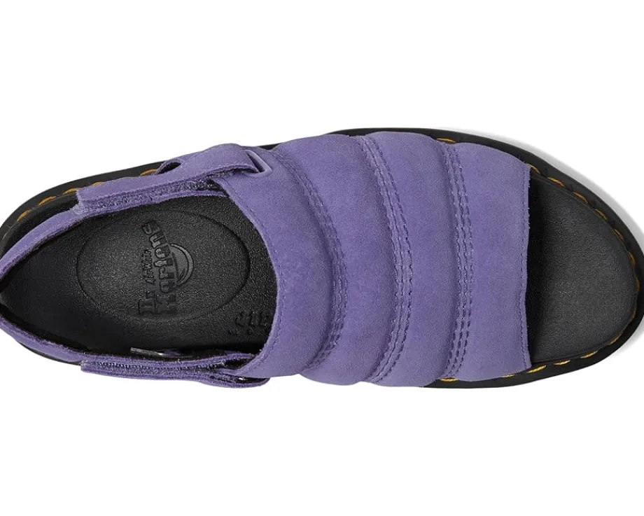 - The Dr. Martens® Kole sandal is specially designed to combine a pillow-soft padded upper with a super-lightweight ethylene vinyl acetate outsole, so you can take your home comforts for a spin on the street. The molded SoftWair EVA footbed and EVA, PVC midsole will feel like walking on air, while the adjustable Ripstop hook-and-loop strap helps you find the perfect fit. Finished with signature DM’s yellow welt stitching. The open round-toe sandal features a platform heel and is finished with signature Dr. Martens’® Goodyear yellow welt stitching.