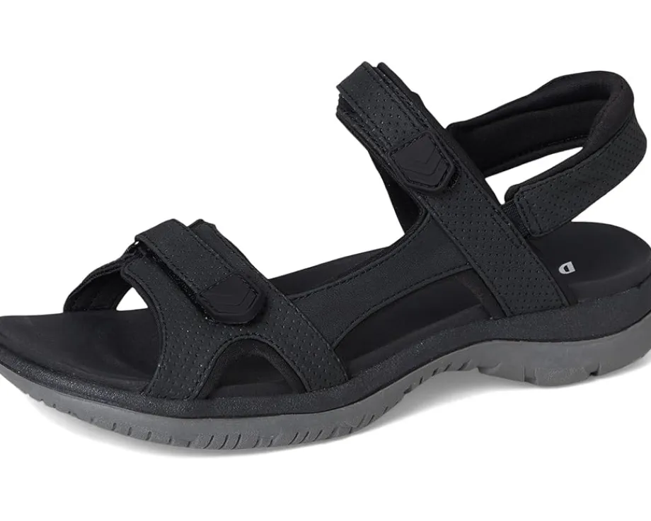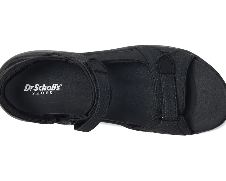 - The Dr. Scholl’s® Adelyn sandals are strappy sandals with stitch detailing, extra heel cushion, and a synthetic rubber outsole. These sporty sandals are made of a low-chemical faux leather and Spenco fabric upper that is partially made from recycled plastic bottles. The straps with hook-and-loop closure and stretch gore ensure easy on/off. Their lightweight, flexible construction with flex grooves moves with you. These flat sandals are designed with a polyurethane lining that is partially made from recycled plastic bottles while the foam insole features Insole technology with anatomical cushioning, comfort, & arch support. As beach shoes, travel shoes, or walking shoes, you will love sporting these sandals everywhere.