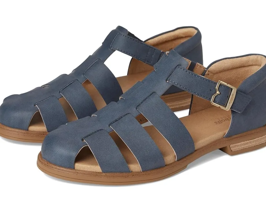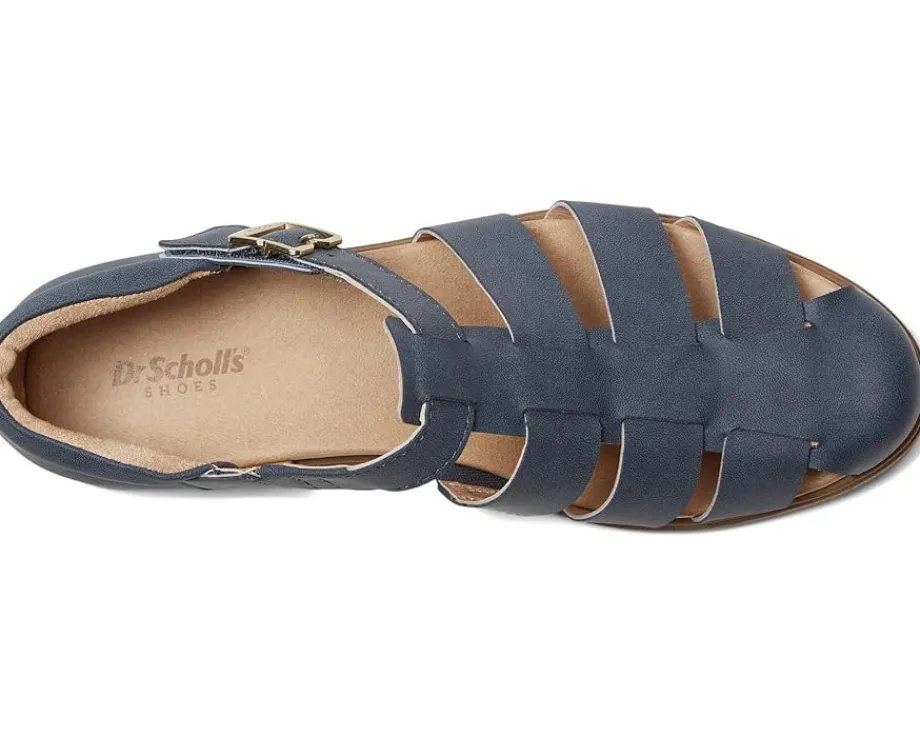- Hit the streets in style wearing the Dr. Scholl’s® Hello Seaside. Crafted from PU upper, lining, and foam insole, this pair of fisherman sandals with caged strappy design for extra coverage features round toe, iconic buckle detail, lightweight, flexible construction moves with you, easy hook-and-loop closure with buckle detail for secure fit, and low heel.