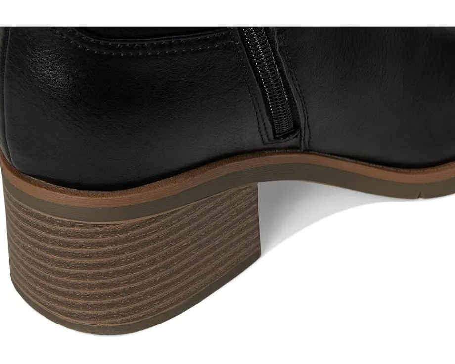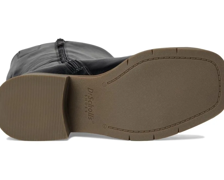- The Dr. Scholl’s® Joplin Riding Tall Boots feature a low-chemical faux leather upper and a sleek silhouette accented by western-inspired stitching, rivet details, and a square toe. The inside zipper ensures effortless on/off wear, while the stacked block heel and lightweight blow thermoplastic rubber outsole offer stability with every step. Crafted with linings and topcloth partially made from recycled plastic bottles, plus a recycled toe box and heel counter, the Joplin also features a cushioned insole made with 15% plant-based BLOOM® foam. Designed to promote freshness and long-lasting comfort, the insole technology supports your stride while minimizing odor and moisture buildup—so you can move confidently.