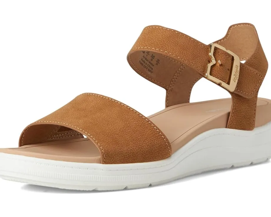- Dr. Scholl’s® Time Off Sky sport sandals for travel and every day inspired by our viral Time Off sneaker. It features canvas fabric vamp with low chemical faux leather straps, low chemical faux leather upper, or metallic upper with molded EVA footbed and TPR outsole. It has an ankle strap with adjustable hook-and-loop closure for easy on and off. Insole Technology with anatomical cushioning, comfort, & arch support. Sky’s the limit in these women’s sandals with sporty feels and all the comfort of the most-wanted Time Off travel sneakers.