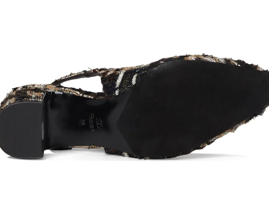 - Bring an instant dose of polish and sophistication to your attire donning the Dune London™ Choiced Dress Heels. Timeless and effortlessly comfortable, these shoes feature a textured fabric upper with an almond toe and a sleek metallic branded snaffle trim detailing at the vamp. Elevated by a sturdy block heel and secured with an adjustable buckle on the slingback strap, the footwear equally parts style and comfort.