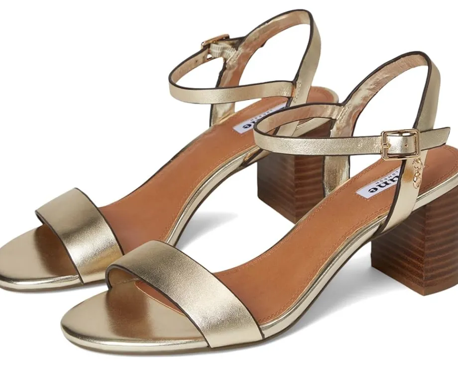- Dune London® Jelly-where chic meets comfort in every step. Designed for warm-weather styling, these sophisticated sandals boast a premium leather upper that exudes timeless charm. The buckle ankle strap with a delicate charm detail adds a luxe touch, while the synthetic lining ensures a smooth, all-day wear experience. Elevate your stride with the veneer-wooden block heel, crafted for both style and stability. The EVA insole provides lightweight cushioning, while the synthetic rubber outsole offers durability and traction.