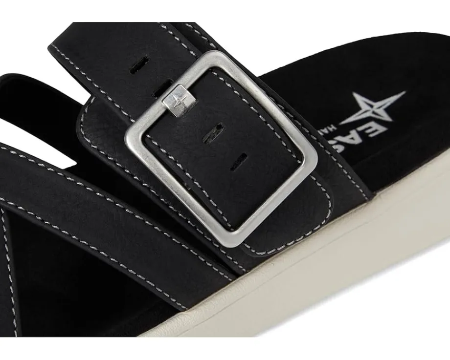 - The Eastland 1955 Edition® Port Clyde sandals feature an oversized buckle that adds a touch of modern sophistication to their design. It is crafted from PU upper, micro-suede fabric lining for barefoot comfort, and lined, contoured cushioned footbed for all day comfort and support. It comes with open toe, adjustable strap detailing, and brand logo on the footbed.