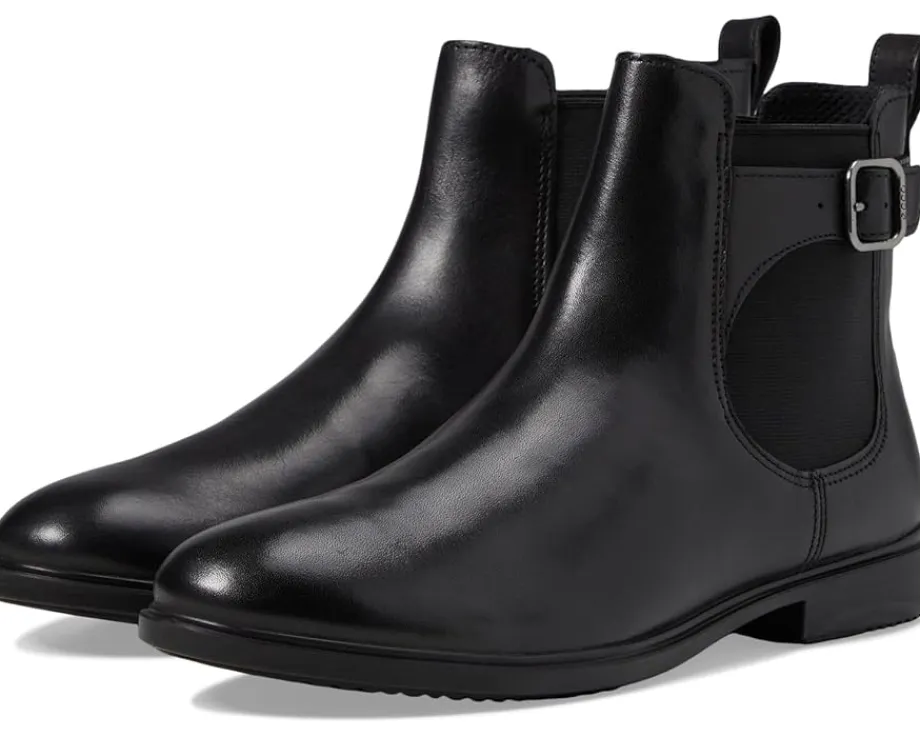 - Enjoy taking a rhythmic stride wearing the ECCO® Dress Classic Chelsea Buckle Ankle Boots. This almond toe pair features wide elasticized goring with buckled accents and back pull tab for easy wear. The ECCO FLUIDFORM™ offers an anatomical fit for a natural and comfortable feel.