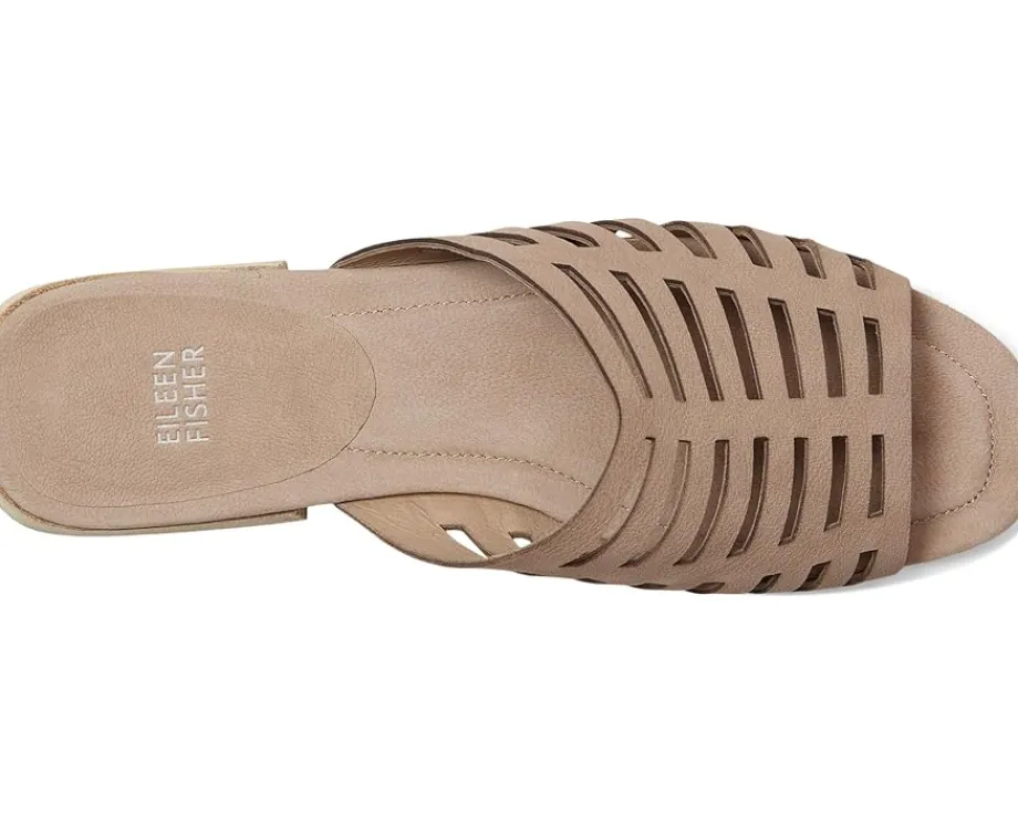 - Walk with grace wearing the Eileen Fisher® Fira Slide. Featuring open square toe, low heel slide with single band upper that has cutouts all around. Crafted from leather upper, lining, insole and sock for comfort.